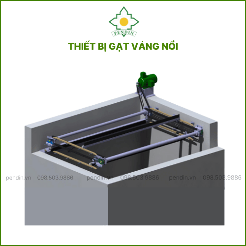- Hệ thống dẫn động: cơ cấu quay hoặc trượt, giúp thiết bị dịch chuyển thu gom váng nổi, cặn nhẹ.