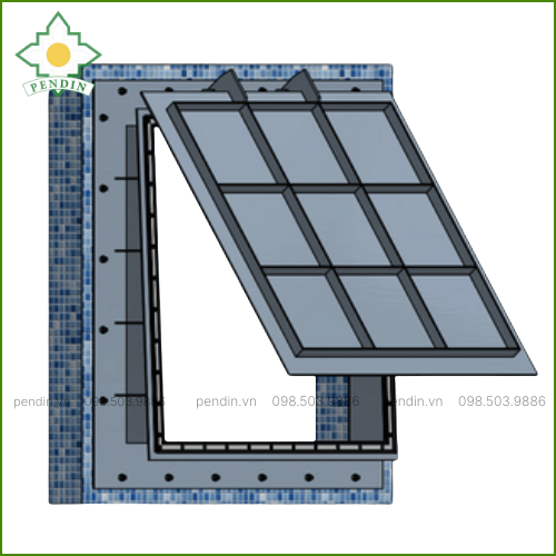 - Bản lề và chốt: Cho phép cánh van mở/đóng linh hoạt theo áp lực nước, đồng thời chịu được tải trọng dòng chảy lớn.