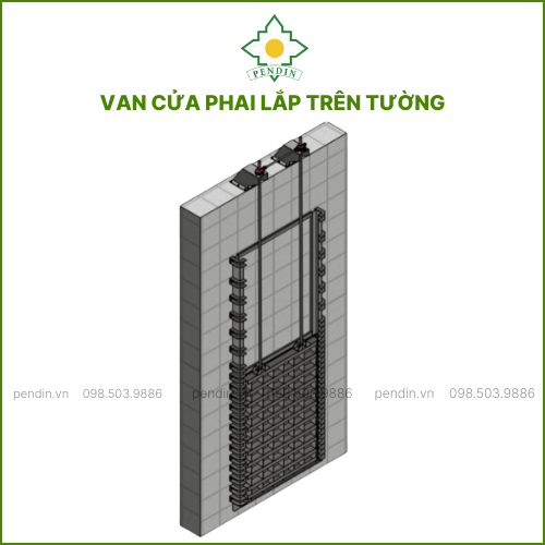 Van cửa phai có thể lắp đặt ở cả hai vị trí: trên tường (wall-mounted) hoặc trong lòng kênh dẫn (embedded). Mỗi kiểu lắp đặt sẽ có cấu tạo khung dẫn hướng khác nhau. Pendin sẽ tư vấn phương án phù hợp nhất với điều kiện thực tế công trình của khách hàng.